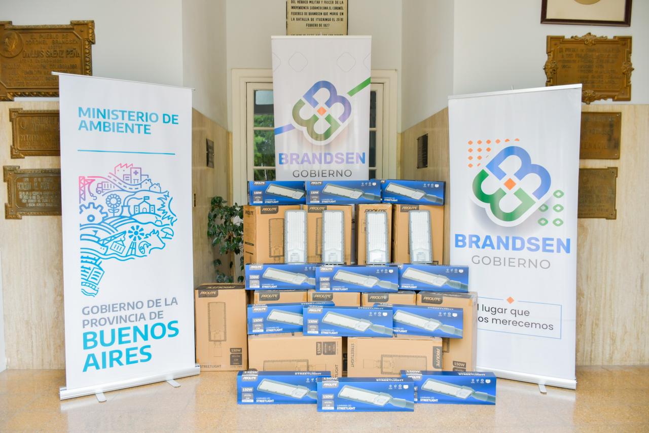 El Ministerio de Ambiente de la Provincia de Buenos Aires realizó la entrega de 120 luminarias LED de 150W al Municipio de Brandsen, con el objetivo de fortalecer la infraestructura urbana mediante equipamiento eficiente y sustentable. El intendente Fernando Raitelli celebró la política ambiental de la autoridad ambiental bonaerense.